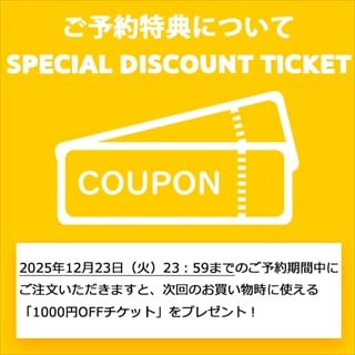 ¡¦Í½Ìó´ü´ÖÃæ¡Ê2025ǯ12·î23Æü¡Ê²Ð¡Ë23¡§59¤Þ¤Ç¡Ë¤Ë¤´Ãíʸ¤¤¤¿¤À¤¤¤¿¾ì¹ç¡¢¼¡²ó¤Î¤ªÇ㤤ʪ¤Ç¤ª»È¤¤¤¤¤¿¤À¤±¤ë¡Ö1000±ßOFF¥Á¥±¥Ã¥È¡×¤¬ÉÕ¤¤¤Æ¤¤¤Þ¤¹¡£